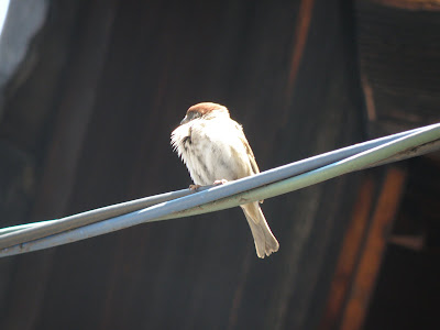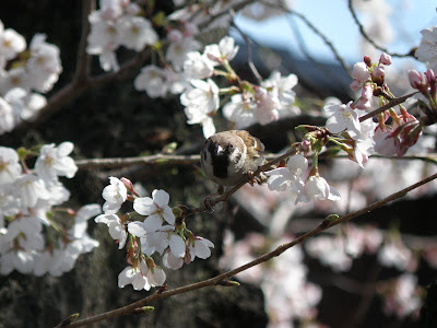 すずめが桜を落としていきます